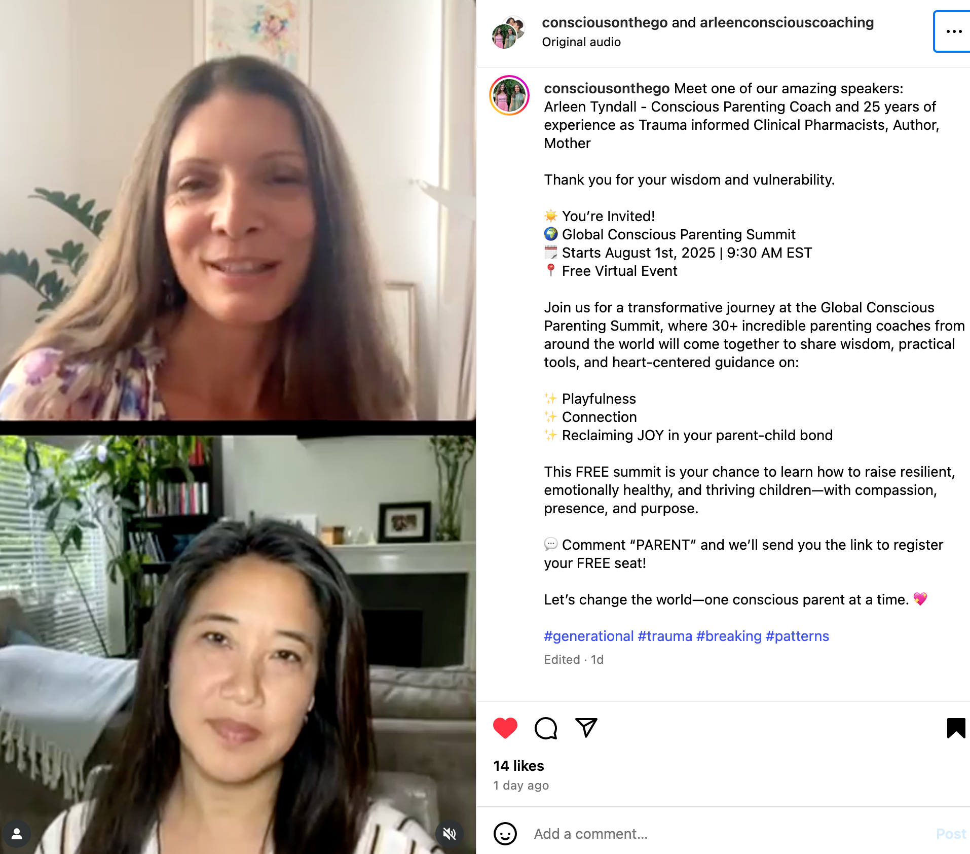 Interview with Conscious On the Go founder prior to the Global Conscious Parenting Summit, click the image to hear how we can break generational patterns and get our kids off a screen!